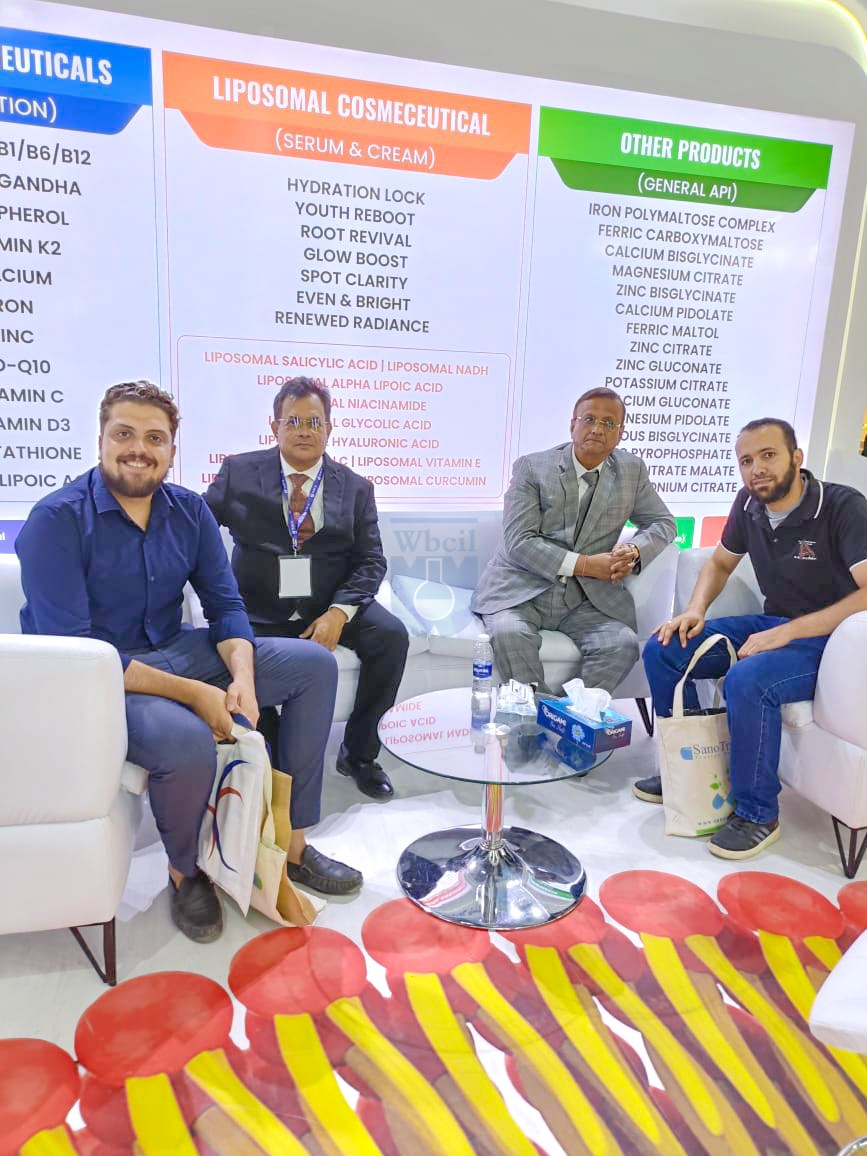 West Bengal Chemical Industries Limited se enorgullece de volver a Pharmaconex Egypt con nuestra revolucionaria tecnología liposomal y nuestros API liposomales de primera calidad, entre los que se incluyen hierro liposomal, calcio liposomal, magnesio liposomal, zinc liposomal, vitamina C liposomal, curcumina liposomal, etc. Tras nuestra exitosa participación en ediciones anteriores, WBCIL sigue demostrando su compromiso con la excelencia y la innovación farmacéuticas.